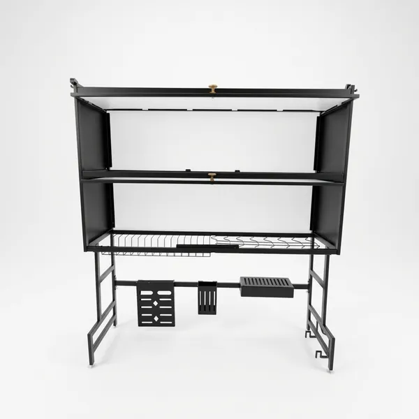 أفكار المحتوى: استغلال المساحة يوفر مكان فوق الحوض ويحرر الرخامة الترتيب اليومي يخلي المطبخ مرتب طول الوقت النظافة تصريف مباشر بدون تجمع ماء السعة العالية يشيل أطباق كثيرة بدون فوضى التحمل هيكل حديد قوي وثابت ـــــــــــــــــــــــــــــــــــــــــــــــــــــــــــــــــــــــــــــــــــــــــــــــــــــــــــــــــــــــــــــــــــــــــــــــــــــــــــ المميزات ينظم الصحون والأكواب والأدوات اليومية بسهولة تصريف الماء مباشرة داخل الحوض هيكل حديد متين ما يهتز أثناء الاستخدام يتحمل أوزان ثقيلة حتى الاستخدام المكثف ثلاث طبقات تخزين عملية ومرتبة حامل سكاكين وألواح تقطيع مخصص خطافات متعددة لتعليق الأدوات حامل عيدان تهوية يمنع الروائح غطاء أكريليك علوي مقاوم للغبار ثبات ممتاز بدون انزلاق أو حركة