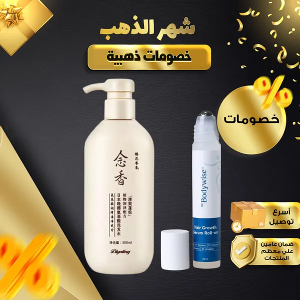المميزات: يمنع تساقط الشعر ويقوي البصيلات يعزز نمو الشعر أسرع خمس مرات ينشط الشعر من الجذور ويزيد كثافته يغذي الشعر الجاف والتالف ويخليه ناعم وحريري يرطب فروة الرأس ويوازن الدهون بدون تهيج يساعد على تنظيف فروة الرأس من الأوساخ العميقة تركيبته تمتص بسرعة بدون دهون سهل الاستخدام مع رول أون دقيق للفراغات مناسب لكل الأعمار للرجال والنساء خالي من البارابين والكبريتات والفثالات ـــــــــــــــــــــــــــــــــــــــــــــــــــــــــــــــــــــــــــــــــــــــــــــــــــــــــــــــــــــــــــــــــــــــــــــــــــــــــــ تفاصيل سريعة لكل منتج شامبو ساكورا الياباني 300 مل المحتوى الصافي 300 مل مناسب لكل أنواع الشعر يغذي الشعر وفروة الرأس بعمق مكونات طبيعية تشمل كولاجين من زهر الكرز يساعد على نعومة ولمعان الشعر ـــــــــــــــــــــــــــــــــــــــــــــــــــــــــــــــــــــــــــــــــــــــــــــــــــــــــــــــــــــــــــــــــــــــــــــــــــــــــــ سيروم روزماري لنمو الشعر 25 مل رول أون الحجم 25 مل نوعه رول أون للشعر يعزز النمو ويقوي البصيلات مناسب لكل أنواع الشعر تركيبة تمتص بسرعة بدون دهون وآمنة على الفروة ـــــــــــــــــــــــــــــــــــــــــــــــــــــــــــــــــــــــــــــــــــــــــــــــــــــــــــــــــــــــــــــــــــــــــــــــــــــــــــ محتويات العرض 1 × شامبو ساكورا الياباني 300 مل 1 × سيروم روزماري لنمو الشعر 25 مل ـــــــــــــــــــــــــــــــــــــــــــــــــــــــــــــــــــــــــــــــــــــــــــــــــــــــــــــــــــــــــــــــــــــــــــــــــــــــــــ طريقة الاستخدام: اغسل شعرك بالشامبو ودلكه لمدة 3-5 دقائق ثم اشطفه بالماء مرة يوميًا بعد الغسل نمرر الرول على فروة الرأس وندلكه بخفة دقيقتين نستخدم السيروم مرتين باليوم ونتركه 6 ساعات أو طول الليل استمر على الاستخدام 3 شهور لتحصل على أفضل نتيجة لنمو وكثافة الشعر
