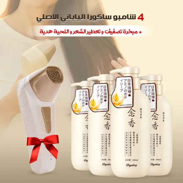 المميزات: ينظف فروة الراس ويشيل الأوساخ بعمق يقلل تساقط الشعر ويخفف دهنيته يغذي الشعر الجاف ويخليه ناعم وحريري يعطي لمعة طبيعية تدوم وقت أطول المبخرة تعطر الشعر وتخليه برائحة منعشة تساعد بتصفيف الشعر وتعطيه مظهر مرتب تحافظ على رطوبة الشعر وتمنع جفافه سهلة الاستخدام بالبيت أو الطلعات عرض متكامل يجمع العناية والتعطير موفّر ويعطيك منتجات عملية يومية ـــــــــــــــــــــــــــــــــــــــــــــــــــــــــــــــــــــــــــــــــــــــــــــــــــــــــــــــــــــــــــــــــــــــــــــــــــــــــــ تفاصيل سريعة – شامبو ساكورا: السعة: 300 مل المكونات: كولاجين من زهر الكرز الاستخدام: يومي وآمن النوع: مناسب لكل أنواع الشعر ـــــــــــــــــــــــــــــــــــــــــــــــــــــــــــــــــــــــــــــــــــــــــــــــــــــــــــــــــــــــــــــــــــــــــــــــــــــــــــ تفاصيل سريعة – المبخرة: الأبعاد: 11.5 × 5 × 11.5 سم القوة: 15 واط التشغيل: USB الاستخدام: للشعر، اللحية، والملابس ـــــــــــــــــــــــــــــــــــــــــــــــــــــــــــــــــــــــــــــــــــــــــــــــــــــــــــــــــــــــــــــــــــــــــــــــــــــــــــ محتويات العرض: 4x شامبو ساكورا ياباني أصلي 1x مبخرة تصفيف وتعطير الشعر واللحية 1x ملقط 1x كابل USB 1x رأس مشط 1x فرشاة تنظيف 1x عبوة لحفظ البخور