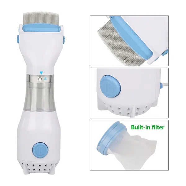 • مزود بفلتر خاص يلقط القمل وبيضه بدون ألم ولا مواد كيميائية مضرة /مناسب للاستخدام للأطفال والحيوانات / القمل لن يعود مرة ثانية لأنه يسحب بيض القمل أيضا الذي يعتبر سبباً رئيسياً في ظهوره مرة أخرى) • *المميزات* • مزوّد بفلتر خاص بيلقط القمل و بيضه وقت تمشيط الشعر بدون ألم ولا مواد كيميائية مضرة • يسحب بيض القمل الذي يعتبر السبب الرئيسي في ظهوره مرة ثانية. • به فلتر بيتجمع فيه القمل. • تستطيعي ان تتخلصي من القمل المحبوس في الفلتر بكل سهولة • سهل في الاستخدام و تصميمه مريح لليد. • أسنان المشط من الفولاذ المقاوم للصدأ. • مزود بإضاءة LED لـ تكون الرؤية واضحة • *الوصف* • طريقة التشغيل:- الكهرباء. • اللون:- أبيض في لبني. •