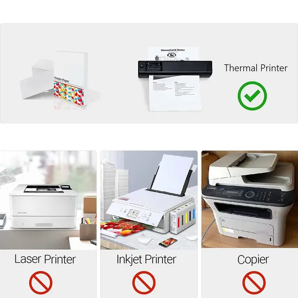 طابعة حرارية محمولة بحجم A4، خفيفة (780 جرام) وسهلة الحمل للسفر أو الاستخدام اليومي. تدعم الاتصال عبر بلوتوث وUSB، وتشتغل على جوالات أندرويد وآيفون وأيضًا اللابتوب. بدون حبر: الطباعة بالحرارة بدقة 203dpi، تطلع أوضح وأسرع (25 ملم/ثانية). بطارية تدوم معك وقت طويل للاستخدام في أي مكان. الورق المرفق 50 ورقة حرارية A4 بجودة عالية، بطيات وفواصل لتغذية سهلة في الطابعة. ورق أبيض حراري مطوي، يعطيك وضوح ممتاز في الطباعة سواء مستندات أو صور. متوافق تمامًا مع الطابعة المحمولة وجاهز للاستخدام المباشر. تفاصيل سريعة: نوع الطابعة: حرارية (A4). دقة الطباعة: 203dpi. سرعة الطباعة: 25 ملم/ث. الأبعاد: 29 × 9 × 6.3 سم. الوزن: 780 جرام. التوصيل: USB + بلوتوث. الورق: 50 ورقة A4 (مطوي، أبيض، حراري). التوافق: M08F / MT800 / Brother PJ. الاستخدام: للطابعات الحرارية فقط. محتويات العبوة: 1 × طابعة حرارية محمولة A4. 1 × كابل USB للشحن والتوصيل. 1 × دليل المستخدم. 50 × ورق طباعة حراري A4. كيفية الاستخدام: اشحن الطابعة بالكامل بكابل الـUSB. شغل الطابعة واضبط الاتصال عبر بلوتوث أو USB بجوالك/لابتوبك. أدخل الورق الحراري المرفق في الطابعة. اطبع مباشرة بدون حبر باستخدام التطبيق أو وظيفة الطباعة. احفظ الورق في مكان بارد وجاف بعيد عن الحرارة والرطوبة.